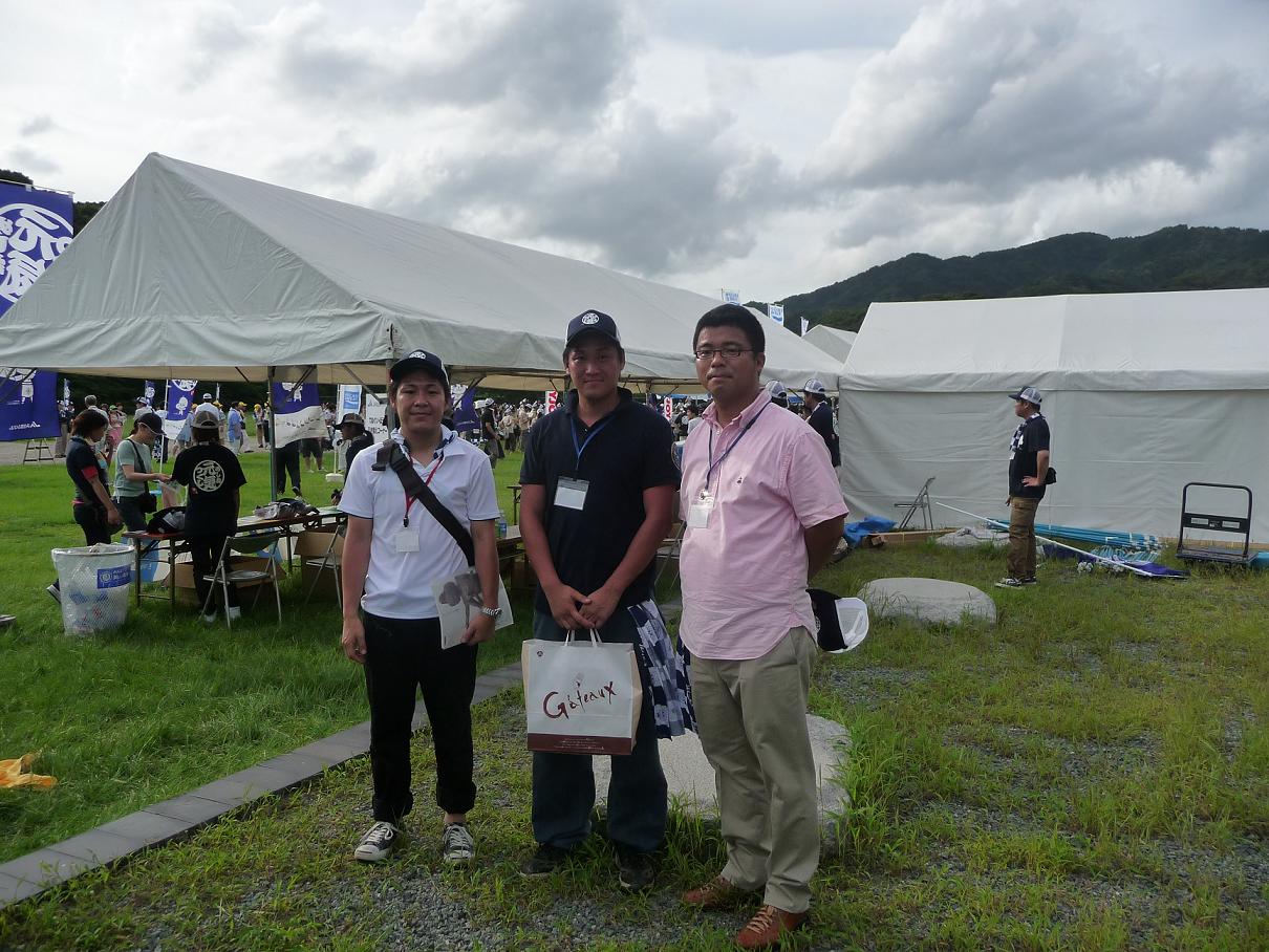 上の三人の若者は、朝日新聞社の方です。イベント主催のため、用意等で真っ黒に日焼けしてありました。ちなみに弊社の担当の方は真ん中の大西さんです。
