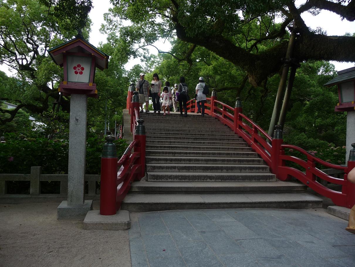 天満宮の中に入ってきました。この橋をカップルで渡ると、別れるという、うわさのある橋です。私が高校生のころの話です。