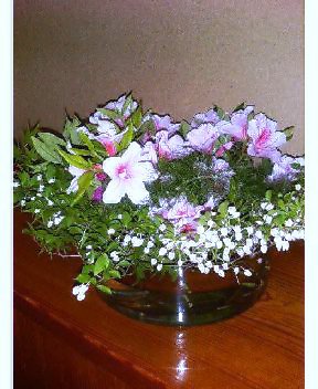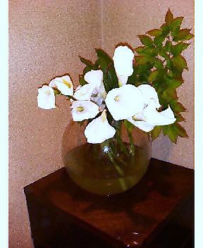母がいけた花です。枝ものも、庭から折って自家製です。