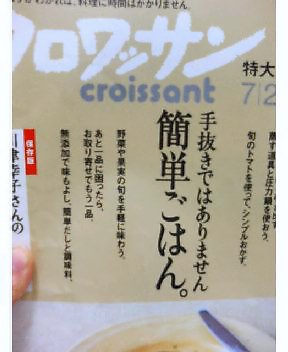 やはり、自分が好きな雑誌の編集の方から、直接お電話をいただくと、舞い上がるものです。マガジンハウスですがと言われても、わけわからず、クロワッサンといわれても、パン屋さんがなんの用かしらんと思い、雑誌に紹介したいといわれて、さらに、わけのわからない言葉を発し、舞い上がってしまったわけです。雑誌に取り上げていただき、もう数ヶ月たちますが、これも、使っておられる方のおすすめと聞き、嬉しいかぎりです。雑誌の中では、「無添加で味もよし、簡単だしと調味料」というコーナーで、コラムニストと斉藤理子さんがおすすめされていました。
