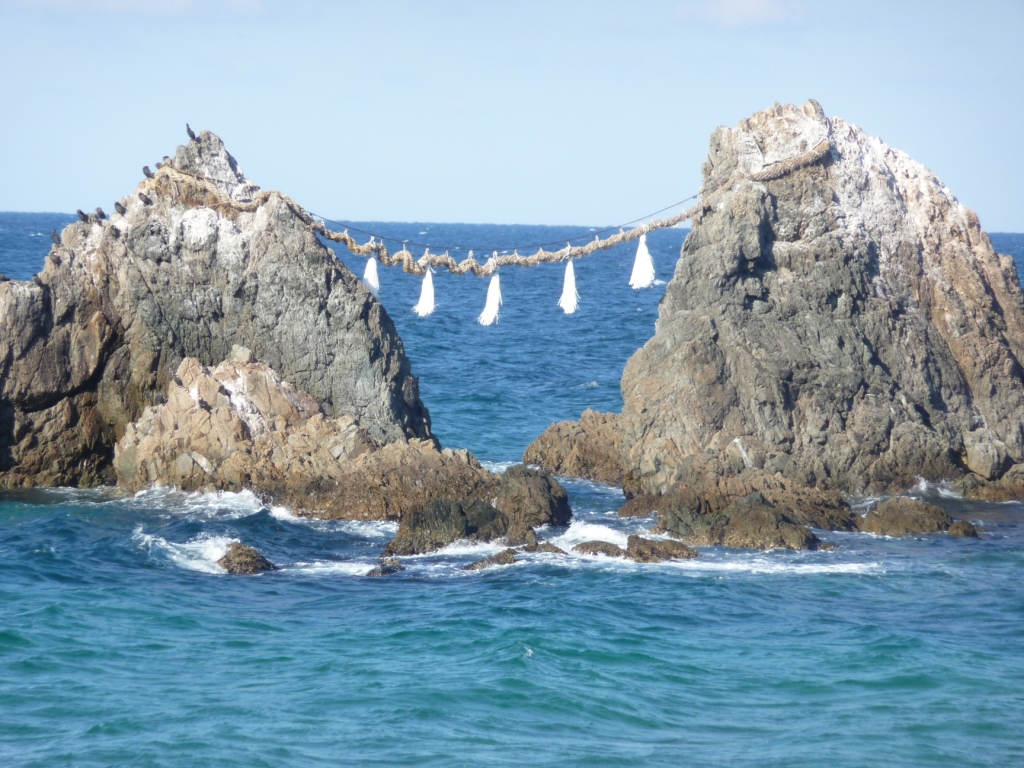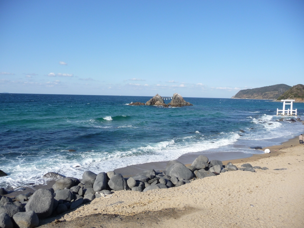 上の写真は先日の日曜に糸島半島をドライブしたときの写真です。このふたつの大きな岩は、夫婦岩といわれ、ふたつの岩をつなぐ縄は、毎年新しくされているようです。この冬の季節の玄界灘の二見が浦は、大変美しい海の色で、サーフィンのポイントでもあるようです。まわりには、海を眺めながら、お茶ができるカフェも多く、美しい場所です。