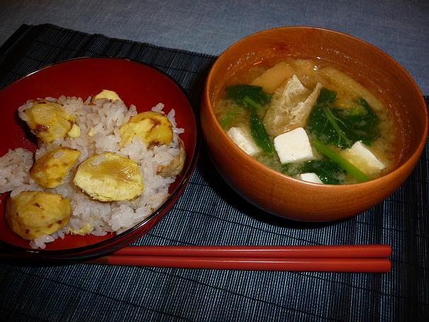 栗ご飯においしいお味噌汁。